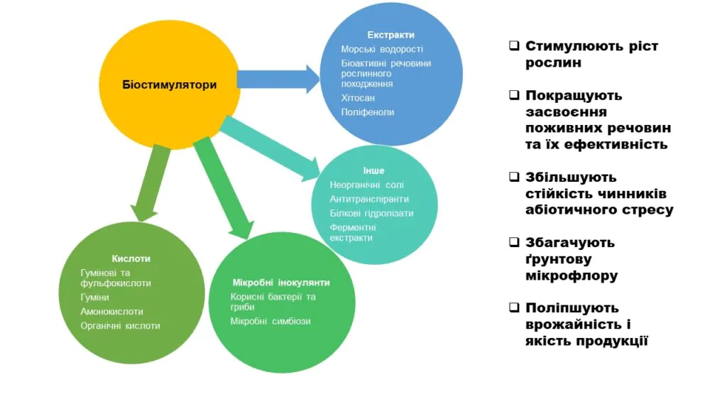Сучасні системи сільського господарства значною мірою залежать від агрохімікатів, таких як хімічні добрива та пестициди, призначені для збільшення виробництва та врожайності. Невибіркове використання цих хімікатів не тільки впливає на ріст рослин через накопичення токсичних сполук, а й погіршує їх якість. Окрім того впливає на життєво-важливі властивості ґрунту та в подальшому відбивається на зниженні урожайності. Існує гостра потреба в розробці якогось екологічного підходу, який міг би вирішити ці проблеми та відновити родючість і стійкість ґрунту. Використання біостимуляторів на основі рослин стало екологічно чистим і прийнятним методом підвищення продуктивності сільськогосподарських культур. Біостимулятори містять біологічні речовини, які можуть прискорювати або стимулювати ріст рослин екологічно чистим способом. Здебільшого це біодобрива, які забезпечують поживними речовинами та захищають рослини від екологічних стресів, таких як посуха та засолення. На відміну від засобів захисту продукції рослинництва (ЗЗР), біостимулятори не тільки впливають на бадьорість рослин, але й не чинять пряму дію проти шкідників чи хвороб. Біостимулятори для рослин покращують мобілізацію та поглинання поживних речовин, стійкість до стресу, а отже, якість врожаю при безпосередньому застосуванні до рослин або в ризосферній області. Вони сприяють росту та розвитку рослин, позитивно впливаючи на життєвий цикл культури, починаючи від проростання насіння до зрілості рослини. Науково-обґрунтоване застосування біостимуляторів не завдає шкоди навколишньому середовищу і в першу чергу забезпечує живлення рослин. Воно сприяє росту ґрунтових мікроорганізмів, що призводить до підвищення родючості ґрунту, а також покращує метаболізм рослин. Крім того, застосування біостимуляторів може позитивно впливати на екзогенні мікроби та змінювати рівновагу мікрофлорного складу ґрунтового середовища.