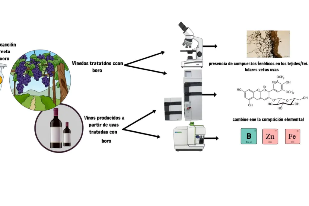 Figura 1. Diseño experimental sobre la aplicación de boro en la vid y su impacto en las propiedades físico-químicas de las bayas y en las características organolépticas del vino.